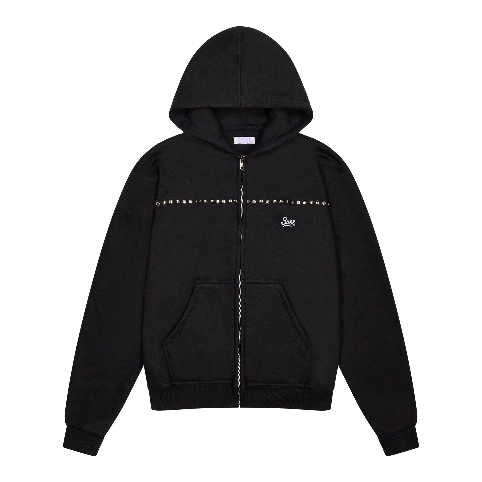 • Load image into Gallery viewer, STUDDED ZIP HOODIE (BLACK)